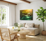 Wandbild auf Leinwand Fluss im Wald Natur Felsen Steine Sonnenuntergang