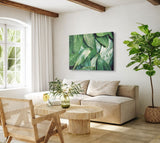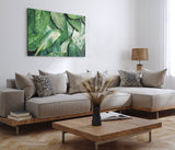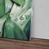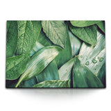 Leinwandbild Grüne Blätter Regentropfen Fotokunst Pflanzen - Dieses moderne und exklusive Wandbild ist ein echter Blickfang für Ihr Wohnzimmer, Schlafzimmer, Küche, Büro, Lounge, Garten oder anderen Einrichtungen. Dieser Fine Art Print wird auf hochwertiger Leinwand gedruckt und auf einen 2 cm starken Holzkeilrahmen gespannt. Gedruckt wird mit den besten Techniken auf dem Markt. Die Bilder bestechen durch eine sehr gute Farbqualität und Brillanz. Jedes Leinwandbild wird eigens in unserem Hause und individuell in Handarbeit (Made in Germany) angefertigt, somit ist ein hohes Maß an Qualität gewährleistet. Für deutsche Qualitätsware zum bestmöglichen Preis sind Sie bei uns genau richtig. Unsere Kunstdrucke eignen sich ideal als Geschenk zu Weihnachten, Ostern, Geburtstag, Hochzeit, Muttertag, Vatertag und andere Anlässen, für Freunde und Familie, egal ob alt oder jung. Damit auch Sie schöner Wohnen mit qualitativ hochwertigen Bildern auf echter Leinwand und Keilrahmen. Einfach auspacken, aufhängen und sich daran erfreuen. TIPP: Diese Dekoration ergänzt wunderbar Möbel wie z.B. Betten, Couch, Sofa, Tisch, Schrank, Küchen usw. gespannt. Traumhafte Accessoires für Ihr Zuhause.