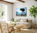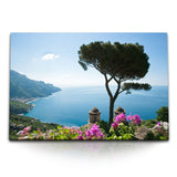 Leinwandbild Italienische Küste Sommer Mittelmeer Baum - Dieses moderne und exklusive Wandbild ist ein echter Blickfang für Ihr Wohnzimmer, Schlafzimmer, Küche, Büro, Lounge, Garten oder anderen Einrichtungen. Dieser Fine Art Print wird auf hochwertiger Leinwand gedruckt und auf einen 2 cm starken Holzkeilrahmen gespannt. Gedruckt wird mit den besten Techniken auf dem Markt. Die Bilder bestechen durch eine sehr gute Farbqualität und Brillanz. Jedes Leinwandbild wird eigens in unserem Hause und individuell in Handarbeit (Made in Germany) angefertigt, somit ist ein hohes Maß an Qualität gewährleistet. Für deutsche Qualitätsware zum bestmöglichen Preis sind Sie bei uns genau richtig. Unsere Kunstdrucke eignen sich ideal als Geschenk zu Weihnachten, Ostern, Geburtstag, Hochzeit, Muttertag, Vatertag und andere Anlässen, für Freunde und Familie, egal ob alt oder jung. Damit auch Sie schöner Wohnen mit qualitativ hochwertigen Bildern auf echter Leinwand und Keilrahmen. Einfach auspacken, aufhängen und sich daran erfreuen. TIPP: Diese Dekoration ergänzt wunderbar Möbel wie z.B. Betten, Couch, Sofa, Tisch, Schrank, Küchen usw. gespannt. Traumhafte Accessoires für Ihr Zuhause.