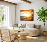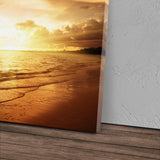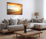 Leinwandbild Strand Meer Horizont Sonnenuntergang Abendröte- Dieses moderne und exklusive Wandbild ist ein echter Blickfang für Ihr Wohnzimmer, Schlafzimmer, Küche, Büro, Lounge, Garten oder anderen Einrichtungen. Dieser Fine Art Print wird auf hochwertiger Leinwand gedruckt und auf einen 2 cm starken Holzkeilrahmen gespannt. Gedruckt wird mit den besten Techniken auf dem Markt. Die Bilder bestechen durch eine sehr gute Farbqualität und Brillanz. Jedes Leinwandbild wird eigens in unserem Hause und individuell in Handarbeit (Made in Germany) angefertigt, somit ist ein hohes Maß an Qualität gewährleistet. Für deutsche Qualitätsware zum bestmöglichen Preis sind Sie bei uns genau richtig. Unsere Kunstdrucke eignen sich ideal als Geschenk zu Weihnachten, Ostern, Geburtstag, Hochzeit, Muttertag, Vatertag und andere Anlässen, für Freunde und Familie, egal ob alt oder jung. Damit auch Sie schöner Wohnen mit qualitativ hochwertigen Bildern auf echter Leinwand und Keilrahmen. Einfach auspacken, aufhängen und sich daran erfreuen. TIPP: Diese Dekoration ergänzt wunderbar Möbel wie z.B. Betten, Couch, Sofa, Tisch, Schrank, Küchen usw. gespannt. Traumhafte Accessoires für Ihr Zuhause.