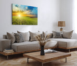 Leinwandbild Weizen Weizenfeld Sonnenuntergang Natur Landschaft- Dieses moderne und exklusive Wandbild ist ein echter Blickfang für Ihr Wohnzimmer, Schlafzimmer, Küche, Büro, Lounge, Garten oder anderen Einrichtungen. Dieser Fine Art Print wird auf hochwertiger Leinwand gedruckt und auf einen 2 cm starken Holzkeilrahmen gespannt. Gedruckt wird mit den besten Techniken auf dem Markt. Die Bilder bestechen durch eine sehr gute Farbqualität und Brillanz. Jedes Leinwandbild wird eigens in unserem Hause und individuell in Handarbeit (Made in Germany) angefertigt, somit ist ein hohes Maß an Qualität gewährleistet. Für deutsche Qualitätsware zum bestmöglichen Preis sind Sie bei uns genau richtig. Unsere Kunstdrucke eignen sich ideal als Geschenk zu Weihnachten, Ostern, Geburtstag, Hochzeit, Muttertag, Vatertag und andere Anlässen, für Freunde und Familie, egal ob alt oder jung. Damit auch Sie schöner Wohnen mit qualitativ hochwertigen Bildern auf echter Leinwand und Keilrahmen. Einfach auspacken, aufhängen und sich daran erfreuen. TIPP: Diese Dekoration ergänzt wunderbar Möbel wie z.B. Betten, Couch, Sofa, Tisch, Schrank, Küchen usw. gespannt. Traumhafte Accessoires für Ihr Zuhause.