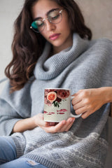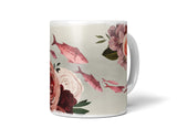Dekorative Tasse mit schönem Motiv Fische Blumen Rosen Kunstvoll Vintage Rot Aquarell