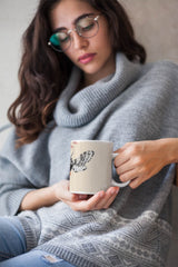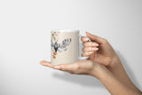 Dekorative Tasse mit schönem Motiv Motte Blumen Pastelltöne Beige Kunstvoll