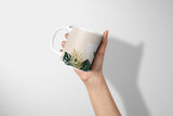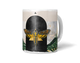 Dekorative Tasse mit schönem Motiv Motte Pflanzen Design goldene Elemente schwarzes Tor
