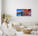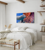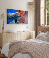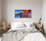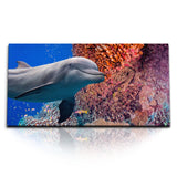 Leinwandbild 120x60cm Delfin Korallen Korallenriff unter Wasser Ozean - Dieses moderne und exklusive Wandbild ist ein echter Blickfang für Ihr Wohnzimmer, Schlafzimmer, Küche, Büro, Lounge, Garten oder anderen Einrichtungen. Dieser Fine Art Print wird auf hochwertiger Leinwand gedruckt und auf einen 2 cm starken Holzkeilrahmen gespannt. Gedruckt wird mit den besten Techniken auf dem Markt. Die Bilder bestechen durch eine sehr gute Farbqualität und Brillanz. Jedes Leinwandbild wird eigens in unserem Hause und individuell in Handarbeit (Made in Germany) angefertigt, somit ist ein hohes Maß an Qualität gewährleistet. Für deutsche Qualitätsware zum bestmöglichen Preis sind Sie bei uns genau richtig. Unsere Kunstdrucke eignen sich ideal als Geschenk zu Weihnachten, Ostern, Geburtstag, Hochzeit, Muttertag, Vatertag und andere Anlässen, für Freunde und Familie, egal ob alt oder jung. Damit auch Sie schöner Wohnen mit qualitativ hochwertigen Bildern auf echter Leinwand und Keilrahmen. Einfach auspacken, aufhängen und sich daran erfreuen. TIPP: Diese Dekoration ergänzt wunderbar Möbel wie z.B. Betten, Couch, Sofa, Tisch, Schrank, Küchen usw. gespannt. Traumhafte Accessoires für Ihr Zuhause.