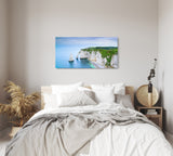 Leinwandbild 120x60cm Normandie Küste Frankreich Alabasterküste Meer - Dieses moderne und exklusive Wandbild ist ein echter Blickfang für Ihr Wohnzimmer, Schlafzimmer, Küche, Büro, Lounge, Garten oder anderen Einrichtungen. Dieser Fine Art Print wird auf hochwertiger Leinwand gedruckt und auf einen 2 cm starken Holzkeilrahmen gespannt. Gedruckt wird mit den besten Techniken auf dem Markt. Die Bilder bestechen durch eine sehr gute Farbqualität und Brillanz. Jedes Leinwandbild wird eigens in unserem Hause und individuell in Handarbeit (Made in Germany) angefertigt, somit ist ein hohes Maß an Qualität gewährleistet. Für deutsche Qualitätsware zum bestmöglichen Preis sind Sie bei uns genau richtig. Unsere Kunstdrucke eignen sich ideal als Geschenk zu Weihnachten, Ostern, Geburtstag, Hochzeit, Muttertag, Vatertag und andere Anlässen, für Freunde und Familie, egal ob alt oder jung. Damit auch Sie schöner Wohnen mit qualitativ hochwertigen Bildern auf echter Leinwand und Keilrahmen. Einfach auspacken, aufhängen und sich daran erfreuen. TIPP: Diese Dekoration ergänzt wunderbar Möbel wie z.B. Betten, Couch, Sofa, Tisch, Schrank, Küchen usw. gespannt. Traumhafte Accessoires für Ihr Zuhause.
