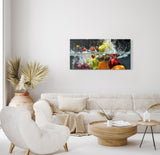 Leinwandbild 120x60cm Obst unter Wasser Orangen Kirschen Küche- Dieses moderne und exklusive Wandbild ist ein echter Blickfang für Ihr Wohnzimmer, Schlafzimmer, Küche, Büro, Lounge, Garten oder anderen Einrichtungen. Dieser Fine Art Print wird auf hochwertiger Leinwand gedruckt und auf einen 2 cm starken Holzkeilrahmen gespannt. Gedruckt wird mit den besten Techniken auf dem Markt. Die Bilder bestechen durch eine sehr gute Farbqualität und Brillanz. Jedes Leinwandbild wird eigens in unserem Hause und individuell in Handarbeit (Made in Germany) angefertigt, somit ist ein hohes Maß an Qualität gewährleistet. Für deutsche Qualitätsware zum bestmöglichen Preis sind Sie bei uns genau richtig. Unsere Kunstdrucke eignen sich ideal als Geschenk zu Weihnachten, Ostern, Geburtstag, Hochzeit, Muttertag, Vatertag und andere Anlässen, für Freunde und Familie, egal ob alt oder jung. Damit auch Sie schöner Wohnen mit qualitativ hochwertigen Bildern auf echter Leinwand und Keilrahmen. Einfach auspacken, aufhängen und sich daran erfreuen. TIPP: Diese Dekoration ergänzt wunderbar Möbel wie z.B. Betten, Couch, Sofa, Tisch, Schrank, Küchen usw. gespannt. Traumhafte Accessoires für Ihr Zuhause.