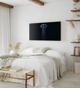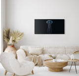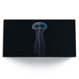 Leinwandbild 120x60cm Qualle unter Wasser schwarzer Hintergrund Fotokunst - Dieses moderne und exklusive Wandbild ist ein echter Blickfang für Ihr Wohnzimmer, Schlafzimmer, Küche, Büro, Lounge, Garten oder anderen Einrichtungen. Dieser Fine Art Print wird auf hochwertiger Leinwand gedruckt und auf einen 2 cm starken Holzkeilrahmen gespannt. Gedruckt wird mit den besten Techniken auf dem Markt. Die Bilder bestechen durch eine sehr gute Farbqualität und Brillanz. Jedes Leinwandbild wird eigens in unserem Hause und individuell in Handarbeit (Made in Germany) angefertigt, somit ist ein hohes Maß an Qualität gewährleistet. Für deutsche Qualitätsware zum bestmöglichen Preis sind Sie bei uns genau richtig. Unsere Kunstdrucke eignen sich ideal als Geschenk zu Weihnachten, Ostern, Geburtstag, Hochzeit, Muttertag, Vatertag und andere Anlässen, für Freunde und Familie, egal ob alt oder jung. Damit auch Sie schöner Wohnen mit qualitativ hochwertigen Bildern auf echter Leinwand und Keilrahmen. Einfach auspacken, aufhängen und sich daran erfreuen. TIPP: Diese Dekoration ergänzt wunderbar Möbel wie z.B. Betten, Couch, Sofa, Tisch, Schrank, Küchen usw. gespannt. Traumhafte Accessoires für Ihr Zuhause.