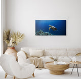 Kunstdruck Bilder Seeschildkröte unter Wasser Blau Korallenriff Ozean