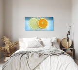 Kunstdruck Bilder Zitronen unter Wasser Zitronenscheiben Gelb Blau Kunstvoll
