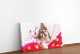 Leinwandbild Kleiner süßer Hund mit Kuscheltier Chihuahua Lustig