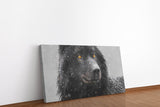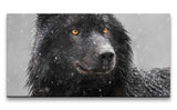 Leinwandbild Schwarzer Wolf mystische Augen Schnee Winter Wildnis