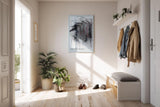 Gravity Trace vereint abstrakte Linienkunst mit strukturellem Hintergrund in Schwarz Weiß und Grau Die feinen fallenden Linien scheinen über das Bild zu gleiten und erzeugen eine Atmosphäre der Bewegung und Schwerkraft Die verwischten Farbflächen erinnern an zerbrochene Felder oder gezeichnete Spuren Gedruckt auf hochwertiger Leinwand und gespannt auf einen FSC-zertifizierten Echtholzrahmen erfüllt das Werk höchste Anforderungen an Qualität und Nachhaltigkeit Die Materialien sind lösungsmittelfrei und ressourcenschonend gefertigt Gravity Trace eignet sich hervorragend für moderne Räume die eine starke visuelle Sprache mit reduzierter Farbpalette suchen und schafft ein spannungsgeladenes visuelles Zentrum