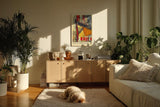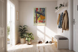- Ein strukturelles Wandbild mit urbaner Energie und farbintensiver Komposition für moderne Interieurs