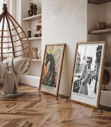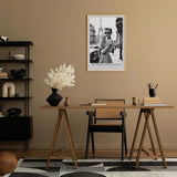 Dieses hochwertige Wandbild von Paul Sinus versprüht den zeitlosen Charme der Pariser Mode und den Zauber vergangener Zeiten. Eine elegante Frau im floralen Vintage-Kleid hält selbstbewusst eine Katze im Arm, während der Eiffelturm majestätisch in der Kulisse thront. Die stilvolle Sonnenbrille, die perfekt frisierte Hochsteckfrisur und die mondäne Ausstrahlung der Frau verleihen dem Motiv eine ikonische, fast filmische Wirkung. Die monochrome Schwarz-Weiß-Ästhetik verstärkt den nostalgischen Charakter dieses Kunstwerks und erzeugt eine elegante Harmonie zwischen Licht und Schatten. Die detaillierte Struktur der Kleidung, die klassisch geschnittene Silhouette und die intensive Mimik der Protagonistin fügen sich zu einer Komposition voller Anmut und Raffinesse. Die Katze als treuer Begleiter verleiht der Szene eine subtile Wärme und einen Hauch von Geheimnis. Paul Sinus gelingt es, mit dieser hochwertigen Wandkunst die Essenz eines mondänen Lebensgefühls einzufangen. Perfekt für moderne Wohnräume, exklusive Boutiquen oder stilvolle Lounges bringt dieses Bild die Schönheit von Paris und die Magie der Vergangenheit in jeden Raum. Die Kombination aus urbaner Kulisse, Pariser Mode und klassischem Retro-Stil macht dieses Kunstwerk zu einem stilvollen Blickfang mit einzigartiger Ästhetik.