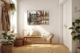 Leinwandbild in präsentiert eine kraftvolle Komposition aus geometrischen Formen, Strukturen und Flächen in Braun-, Grau- und Schwarztönen. Die abstrahierten Architekturformen und grafischen Linien verleihen dem Werk einen urbanen, industriellen Charakter, der sich besonders in modernen Interieurs harmonisch einfügt. Die Komposition wirkt markant, strukturiert und zeitlos zugleich. Gedruckt auf hochwertiger Leinwand, aufgespannt auf einem robusten Echtholzrahmen und umweltschonend produziert mit lösungsmittelfreien Farben – ein Kunstwerk mit visueller Stärke und ökologischem Anspruch.