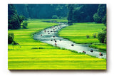 Sinus Art Wandbild Schmaler Fluss mit vielen Booten zwischen satten Reisfeldern in leuchtendem Grün