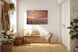 Leinwandbild - weitläufiges Lavendelfeld im Abendlicht mit zarten Rosa- und Violetttönen sowie einem goldfarbenen Himmel im Hintergrund Die perfekte Linienführung der Felder erzeugt Tiefe und Harmonie während die Farben Ruhe und Romantik vermitteln Der hochwertige Leinwanddruck bringt jedes Detail gestochen scharf zur Geltung und sorgt für eine hochwertige Präsentation auf robustem Echtholzrahmen Das Motiv passt ideal in Räume die Gelassenheit Natürlichkeit und Eleganz ausstrahlen sollen Die Herstellung erfolgt umweltbewusst mit lösungsmittelfreien Farben und nachhaltigen Materialien So entsteht ein Kunstwerk das ästhetisch wie auch ökologisch überzeugt
