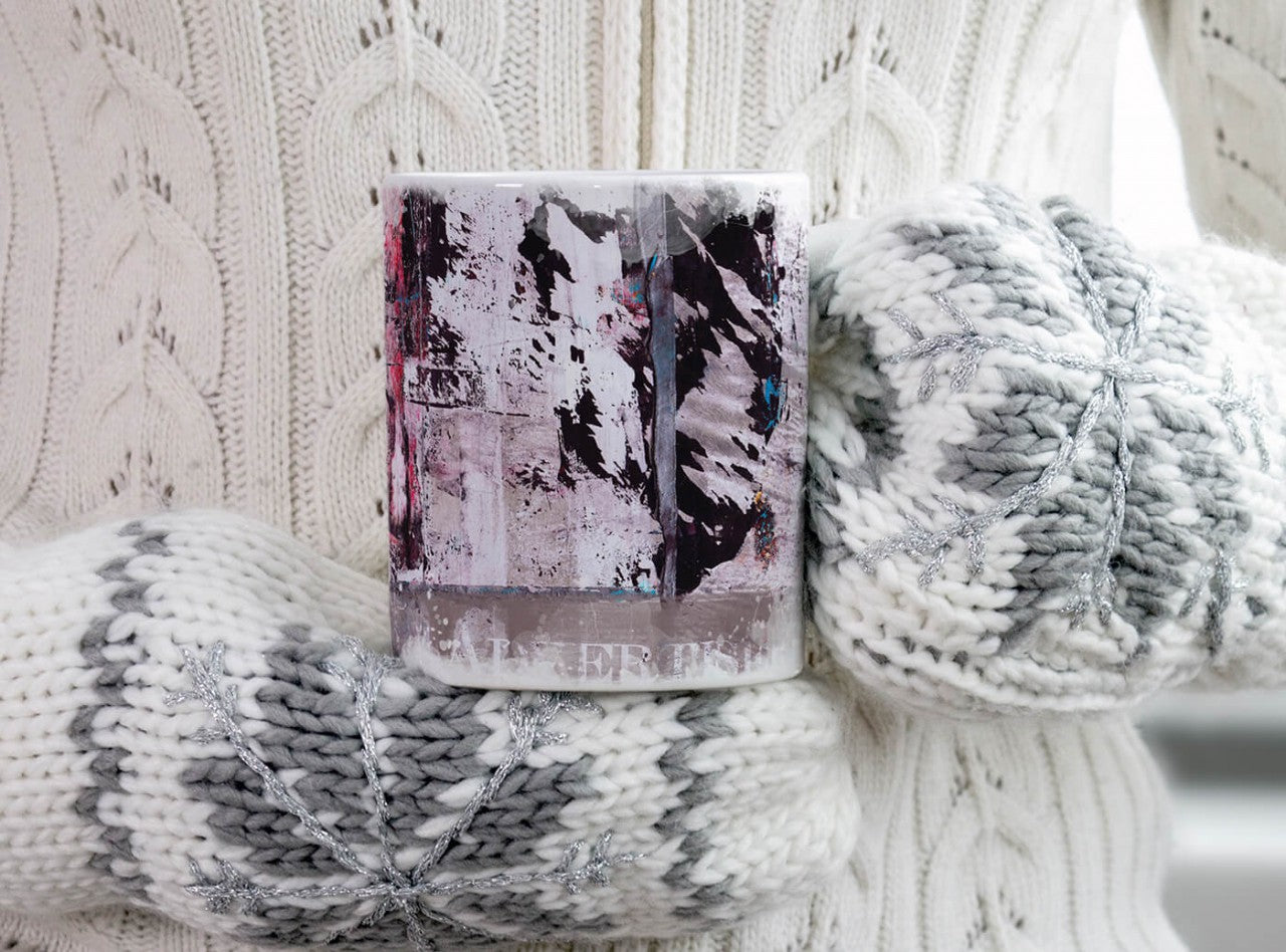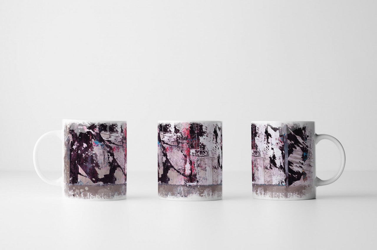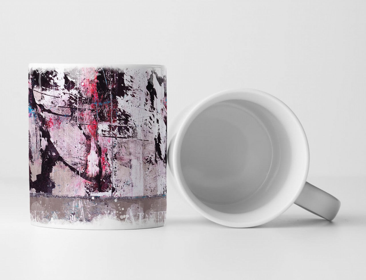 Tasse Geschenk hellrosa-hellgraue Grundierung; schwarz, rot Abstraktionen