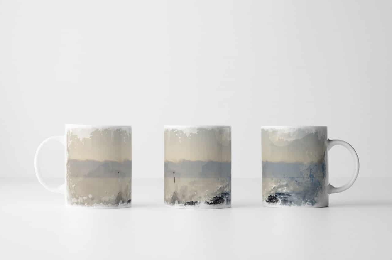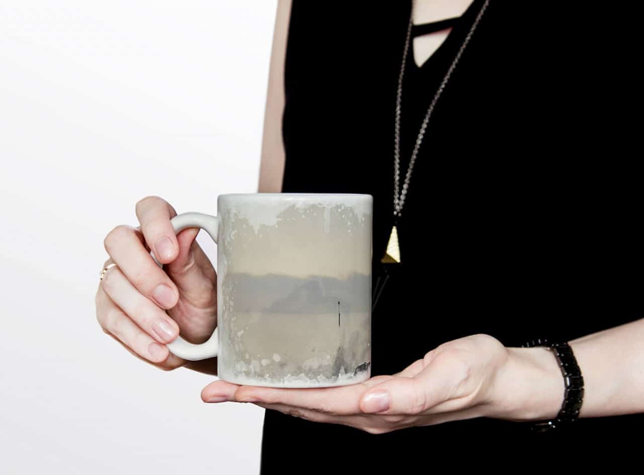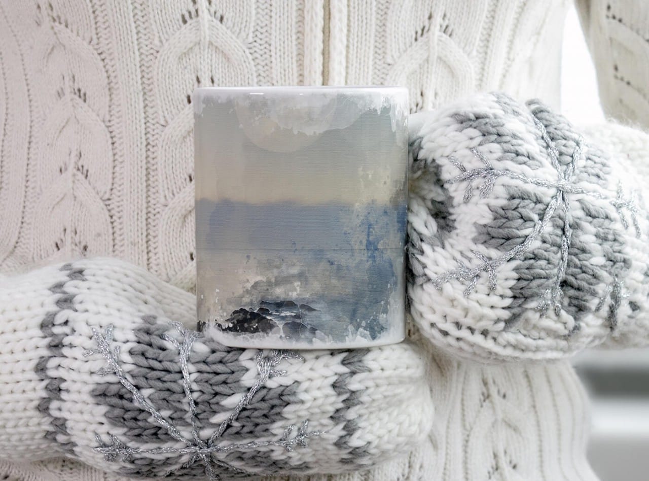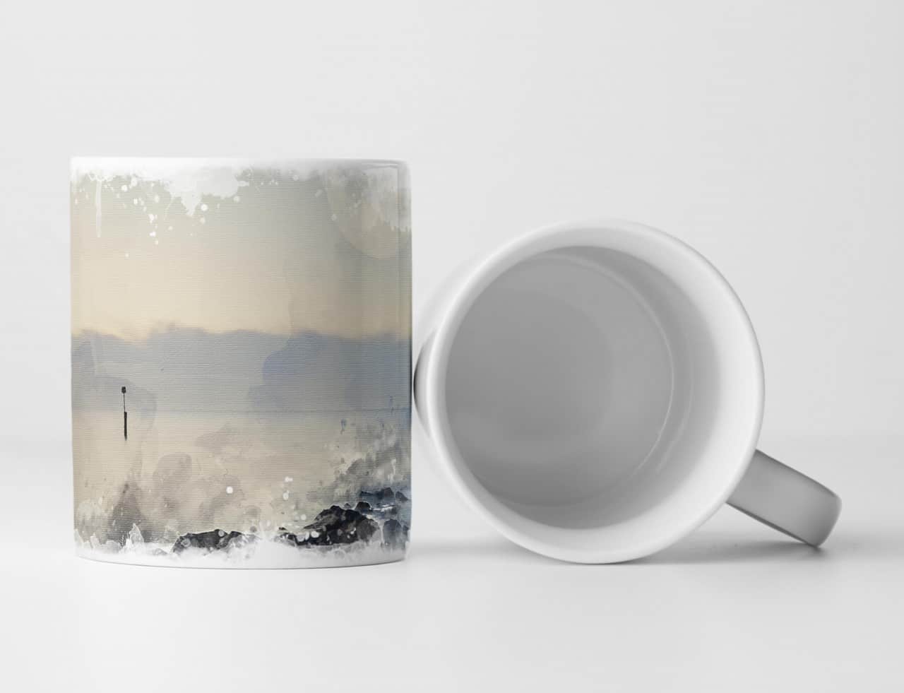 Tasse Geschenk Wasserfarben Malerei Mond Meer