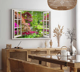Wandbild Fensterbild Japanischer Garten Grün Natur Park Teich - Dieses moderne und exklusive Wandbild ist ein echter Blickfang für Ihr Wohnzimmer, Schlafzimmer, Küche, Büro, Lounge, Garten oder anderen Einrichtungen. Dieser Fine Art Print wird auf hochwertiger Leinwand gedruckt und auf einen 2 cm starken Holzkeilrahmen gespannt. Gedruckt wird mit den besten Techniken auf dem Markt. Die Bilder bestechen durch eine sehr gute Farbqualität und Brillanz. Jedes Leinwandbild wird eigens in unserem Hause und individuell in Handarbeit (Made in Germany) angefertigt, somit ist ein hohes Maß an Qualität gewährleistet. Für deutsche Qualitätsware zum bestmöglichen Preis sind Sie bei uns genau richtig. Unsere Kunstdrucke eignen sich ideal als Geschenk zu Weihnachten, Ostern, Geburtstag, Hochzeit, Muttertag, Vatertag und andere Anlässen, für Freunde und Familie, egal ob alt oder jung. Damit auch Sie schöner Wohnen mit qualitativ hochwertigen Bildern auf echter Leinwand und Keilrahmen. Einfach auspacken, aufhängen und sich daran erfreuen. TIPP: Diese Dekoration ergänzt wunderbar Möbel wie z.B. Betten, Couch, Sofa, Tisch, Schrank, Küchen usw. gespannt. Traumhafte Accessoires für Ihr Zuhause.