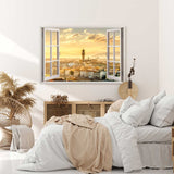 Wandbild Fensterbild Kathedrale von Florenz Italien Altstadt Abendrot - Dieses moderne und exklusive Wandbild ist ein echter Blickfang für Ihr Wohnzimmer, Schlafzimmer, Küche, Büro, Lounge, Garten oder anderen Einrichtungen. Dieser Fine Art Print wird auf hochwertiger Leinwand gedruckt und auf einen 2 cm starken Holzkeilrahmen gespannt. Gedruckt wird mit den besten Techniken auf dem Markt. Die Bilder bestechen durch eine sehr gute Farbqualität und Brillanz. Jedes Leinwandbild wird eigens in unserem Hause und individuell in Handarbeit (Made in Germany) angefertigt, somit ist ein hohes Maß an Qualität gewährleistet. Für deutsche Qualitätsware zum bestmöglichen Preis sind Sie bei uns genau richtig. Unsere Kunstdrucke eignen sich ideal als Geschenk zu Weihnachten, Ostern, Geburtstag, Hochzeit, Muttertag, Vatertag und andere Anlässen, für Freunde und Familie, egal ob alt oder jung. Damit auch Sie schöner Wohnen mit qualitativ hochwertigen Bildern auf echter Leinwand und Keilrahmen. Einfach auspacken, aufhängen und sich daran erfreuen. TIPP: Diese Dekoration ergänzt wunderbar Möbel wie z.B. Betten, Couch, Sofa, Tisch, Schrank, Küchen usw. gespannt. Traumhafte Accessoires für Ihr Zuhause.